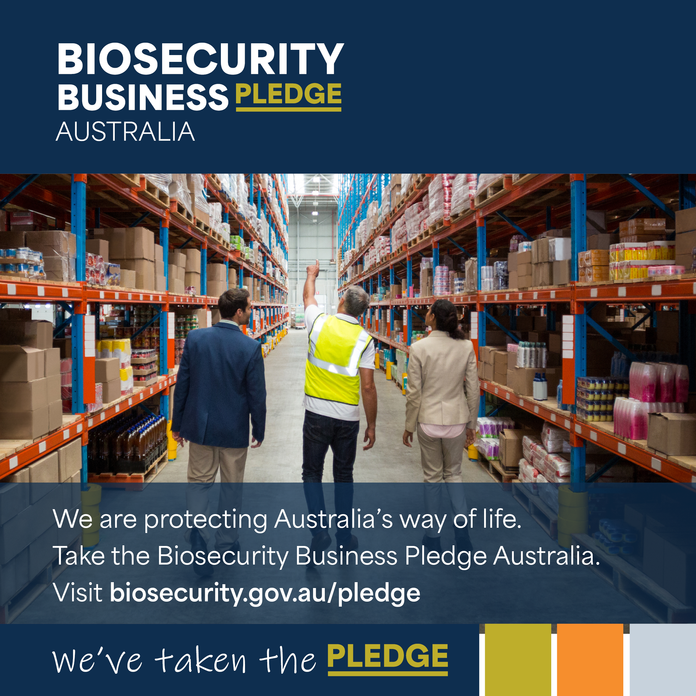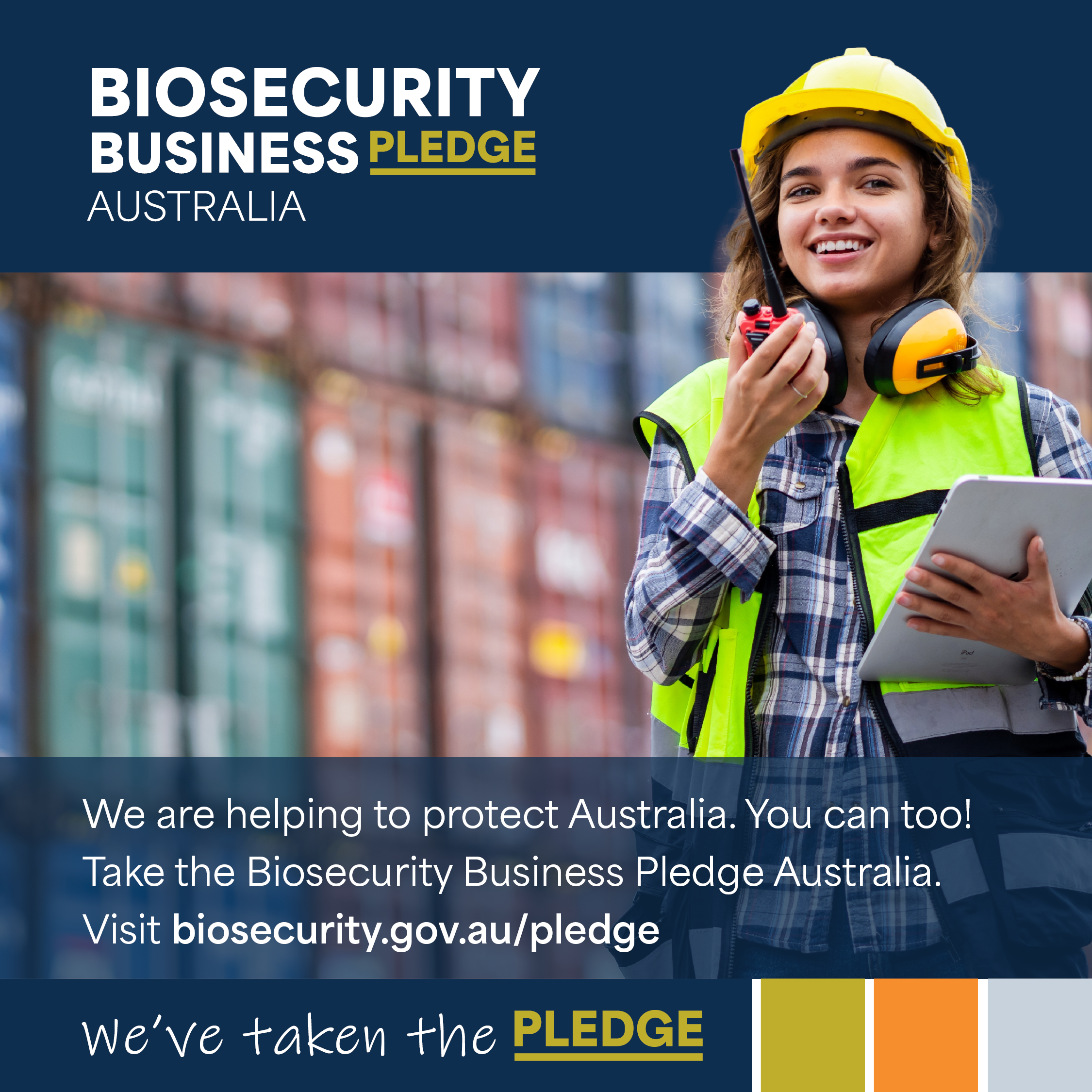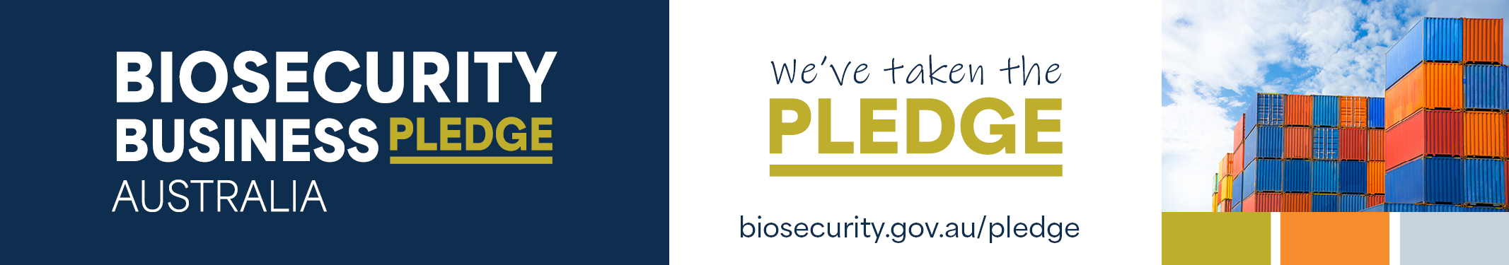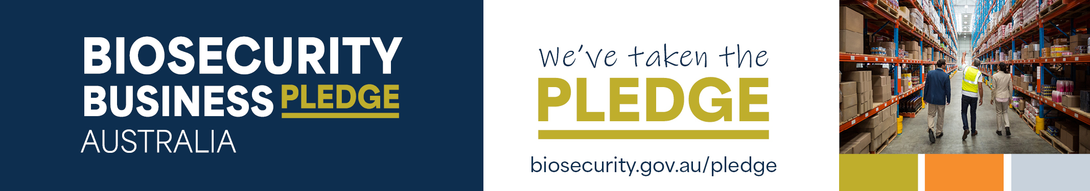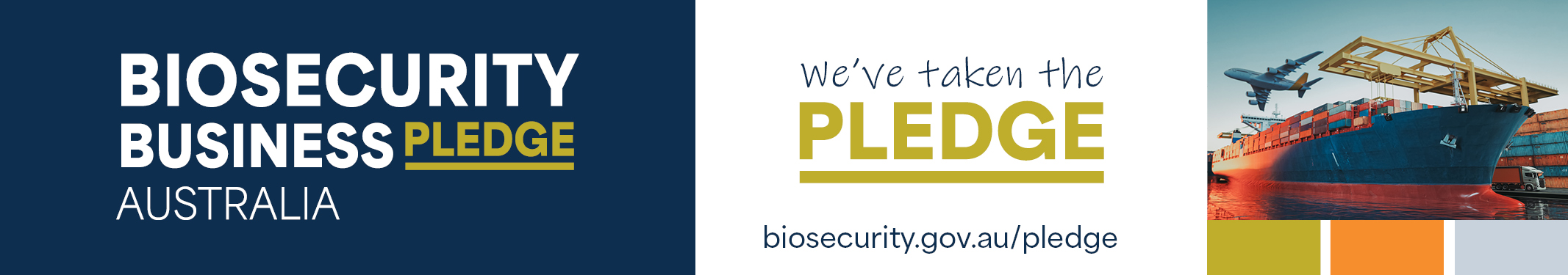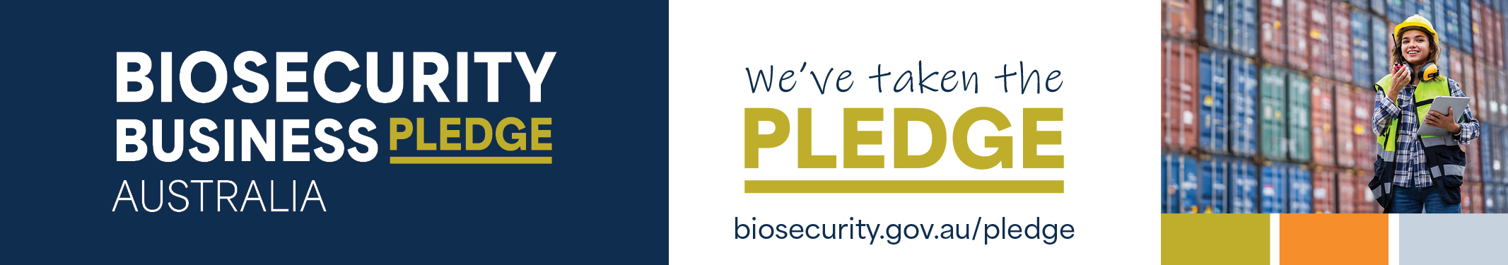 Thank you for showing your commitment to Australia’s biosecurity system by taking the Biosecurity Business Pledge Australia. The pledge reflects a shared responsibility to help safeguard our economy, environment, and communities from biosecurity risks.